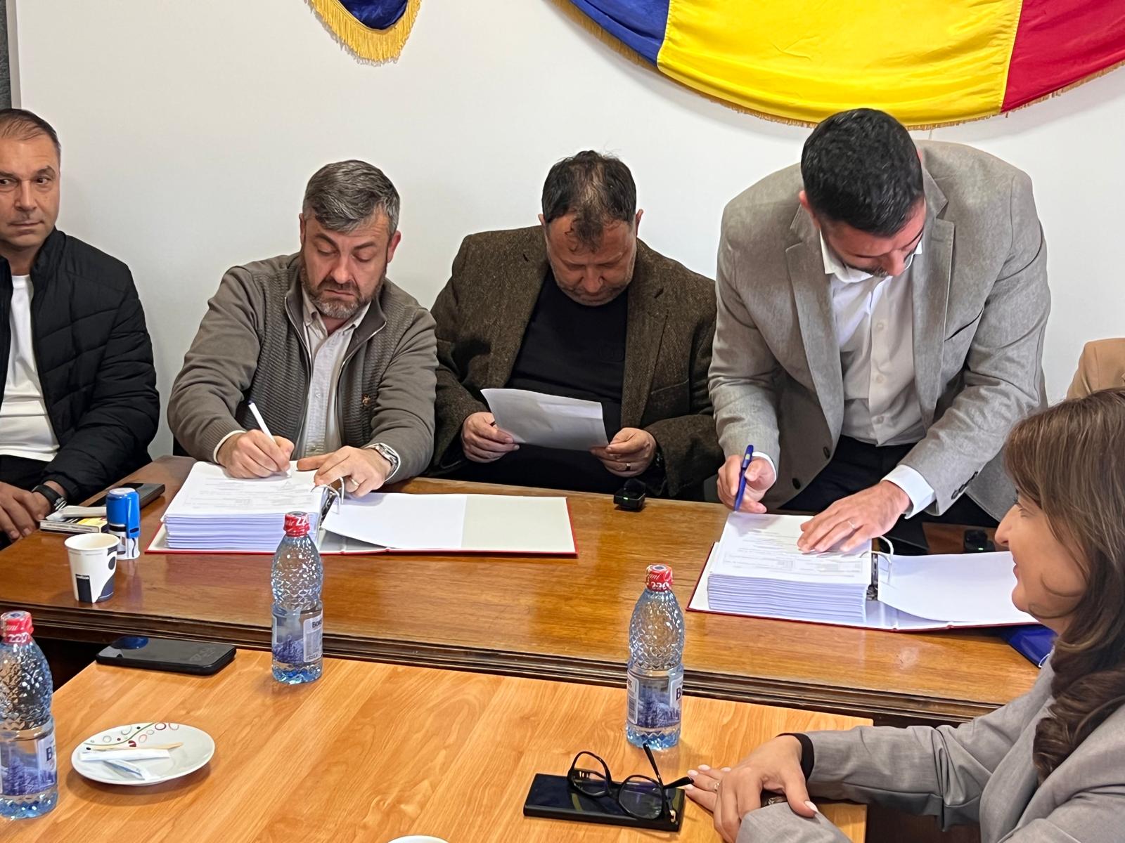 S-a semnat contractul de execuție a lucrărilor la sistemul de canalizare, în prezența costructorului care a câștigat licitația, a directorului general al Apa Service Giurgiu, președintelui Consiliului Județean, a primarului comunei Ogrezeni, consilierilor locali și a parlamentarilor de Giurgiu.