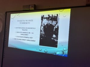 I-am prins într-un moment potrivit, după o oră de chimie, în  care tocmai ce aflaseră despre proprietățile chimice și fizice ale apei. Noi le-am vorbit despre anomaliile apei și în special despre campania ”Toaleta Nu este tomberon!”.