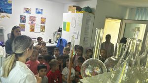 A urmat bazinul cu pești colorați, unde am zăbovit mai bine de un sfert de oră, apoi micuții au fost martorii primelor lor experimente chimice, la laboratorul de analiză a apei potabile.